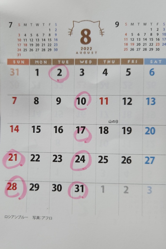 8月の営業日お知らせ☘️