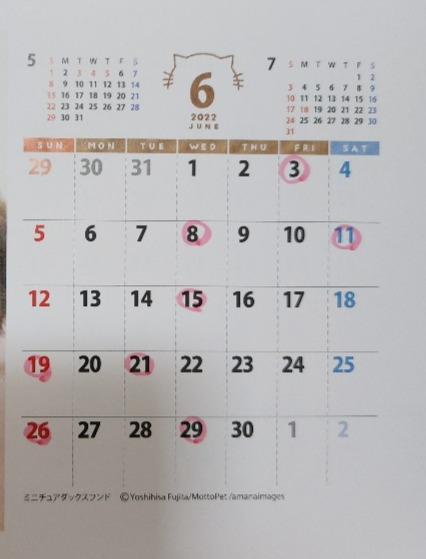 6月の営業日はこちらです😊不規則になりますが、よろしくお願いします😊
